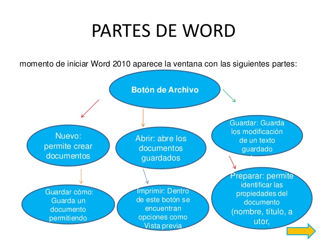 3: buscar la ventana de microsof wort 2010 con cada una de sus partes y esplicarlas