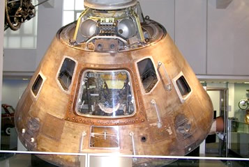 4- Cápsula del Apollo 10. Décimo vuelo del programa Apolo (denominado oficialmente como AS-505), fue lanzado el día 18 de mayo de 1969 con Thomas P. Stafford, John W. Young y Eugene A. Cernan a bordo.
