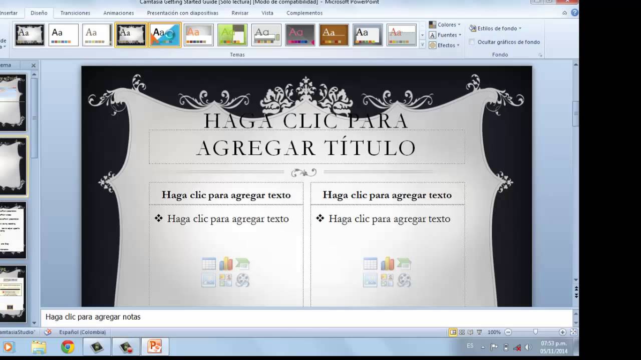 Área de notas: Puedes añadir las notas de apoyo para realizar la presentación.